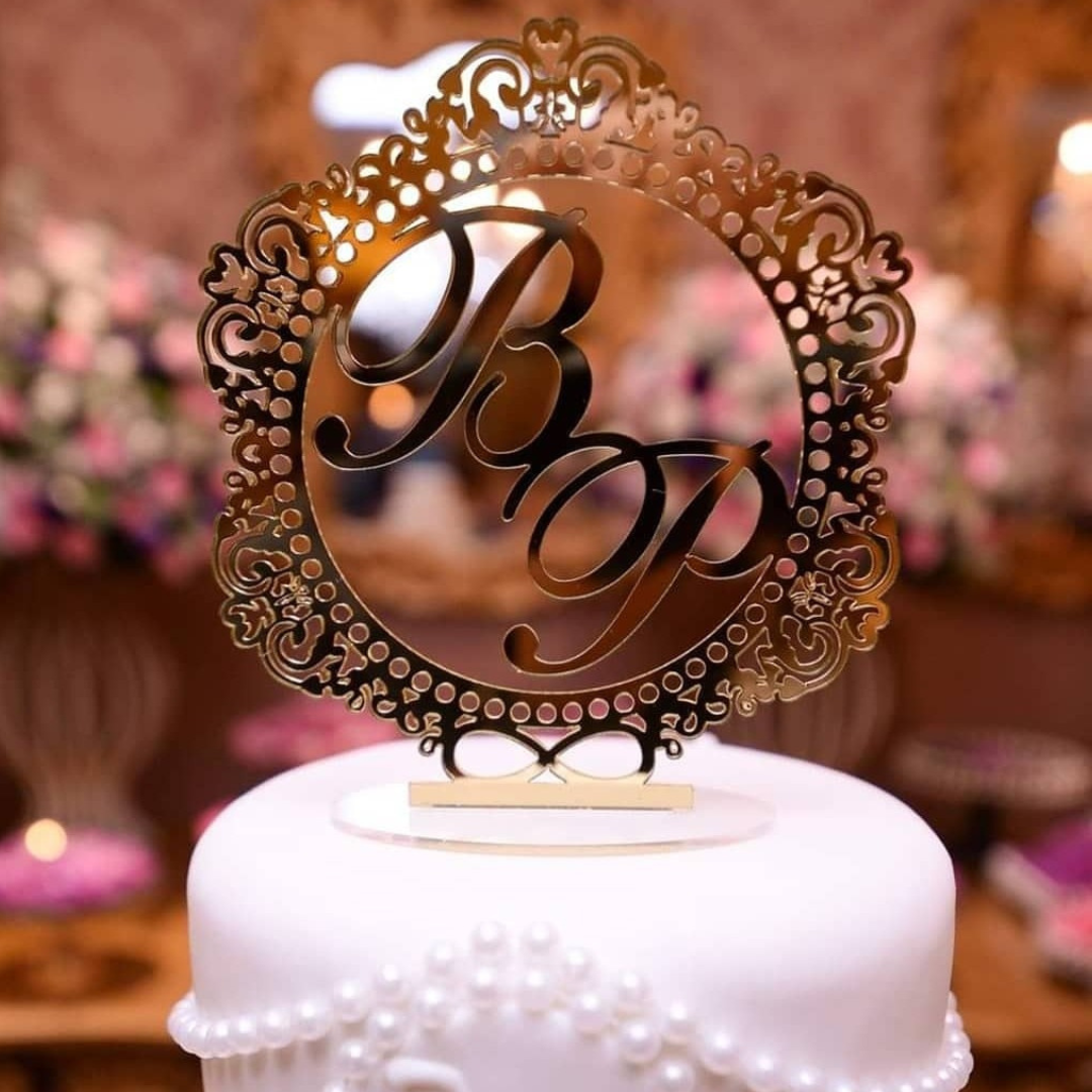 Topo de Bolo Personalizado em Acrílico, com até 17 centímetros.
