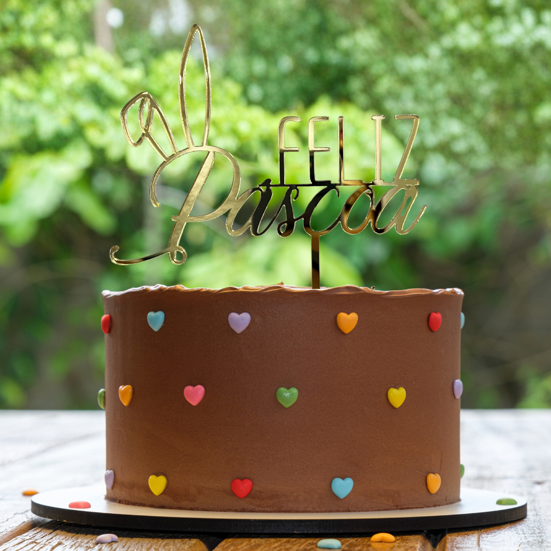Topo de Bolo Páscoa - Feliz Páscoa Dourado
